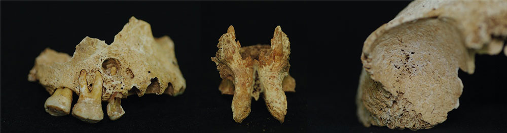 C’est l’examen dentaire qui apporte le plus d’informations, voire la cause éventuelle du décès. L’observation du maxillaire révèle la présence d’un abcès sévère sur la 2e prémolaire supérieure droite. Importante, la lésion était probablement visible sur la gencive, à l’emplacement de la dent. Cet abcès s’est développé à partir d’une carie profonde qui n’a pas été soignée. Généralement, la douleur associée à ce type de lésion est intense et ne peut être soulagée que par le froid, la prise d’anti-inflammatoire ou une extraction de la dent. Durant l’Antiquité, toutes ces solutions sont applicables. Elles doivent néanmoins être rapidement mises en œuvre et suivies d’un traitement anti-bactérien efficace afin d’éviter un développement infectieux périphérique. En effet, dans les cas les plus graves, plus rares, les bactéries peuvent circuler jusqu’au cœur et provoquer le décès par endocardite bactérienne.