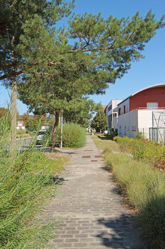 Ce nouveau quartier est conçu autour d’une trame d’espaces publics urbains de qualité (voiries, parkings mutualisés, voies vertes et espaces paysagers) et bénéficie d’une desserte en transports en commun par ligne structurante.